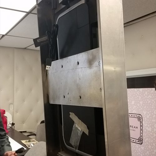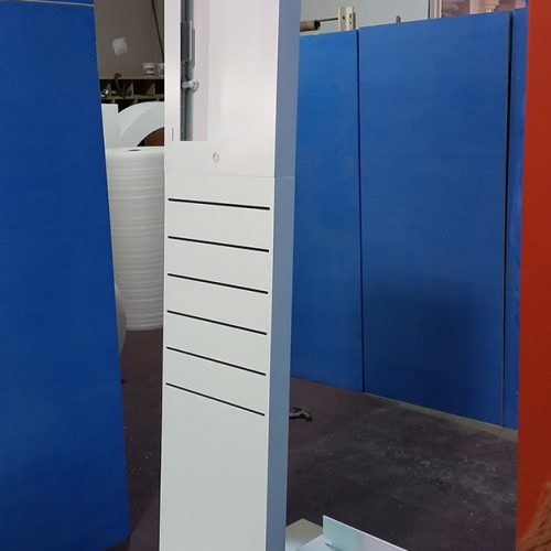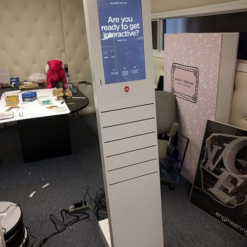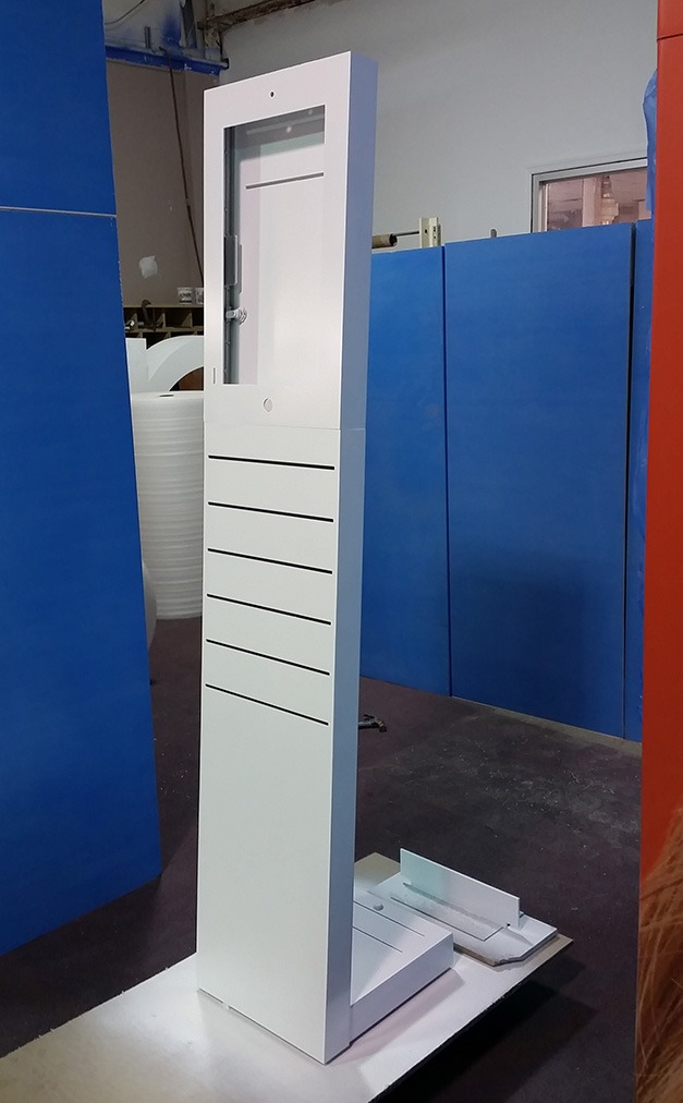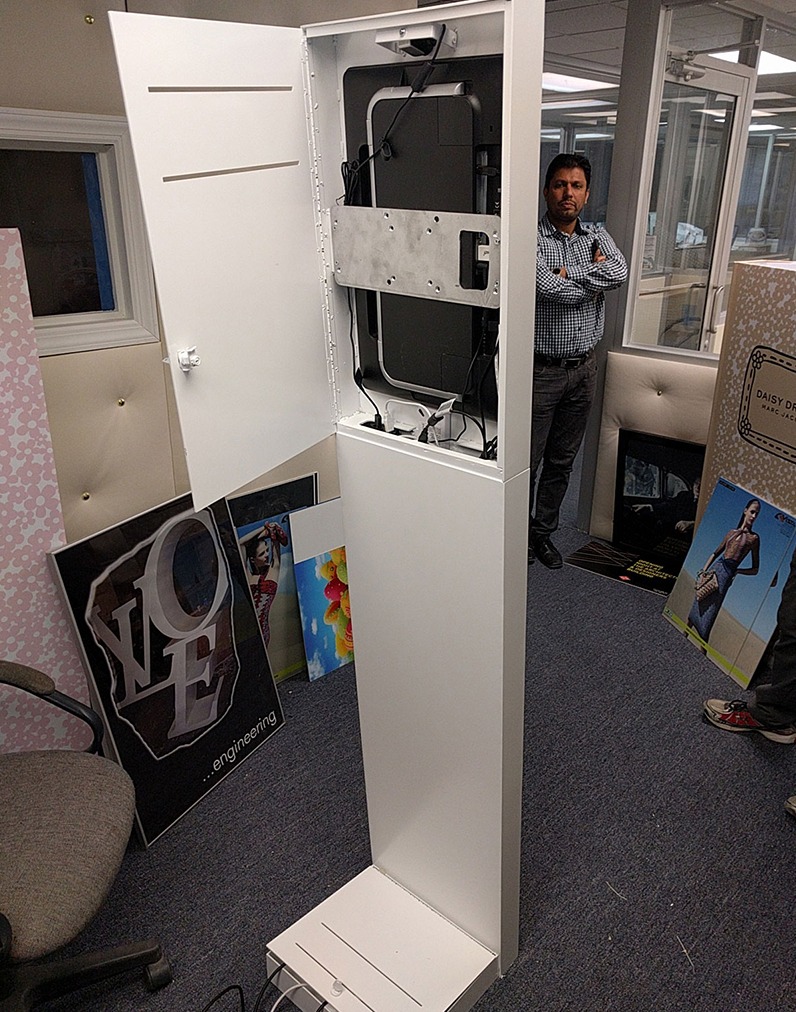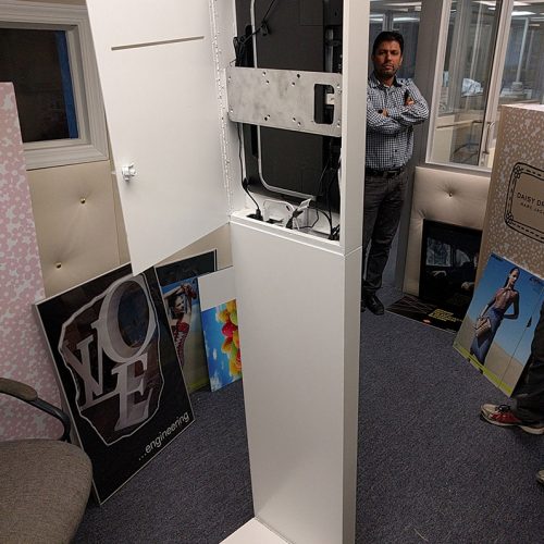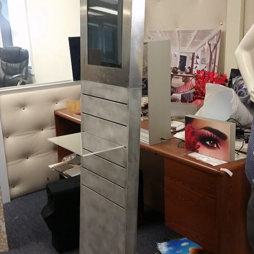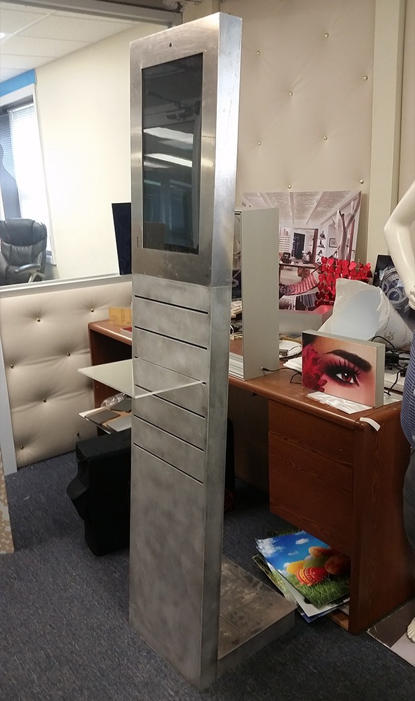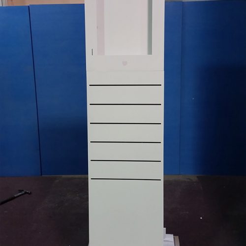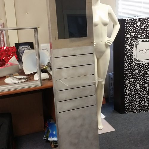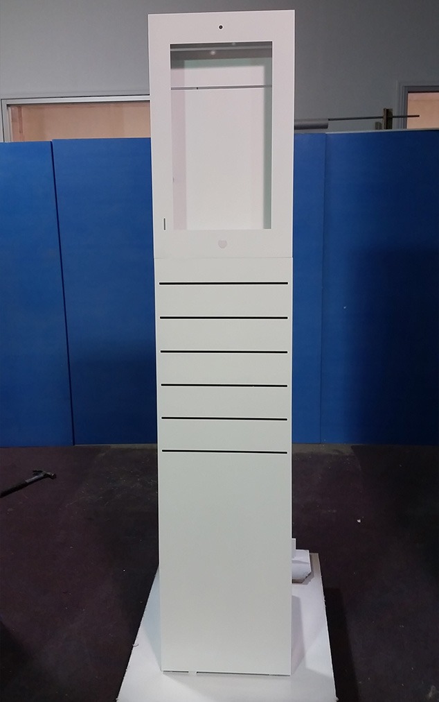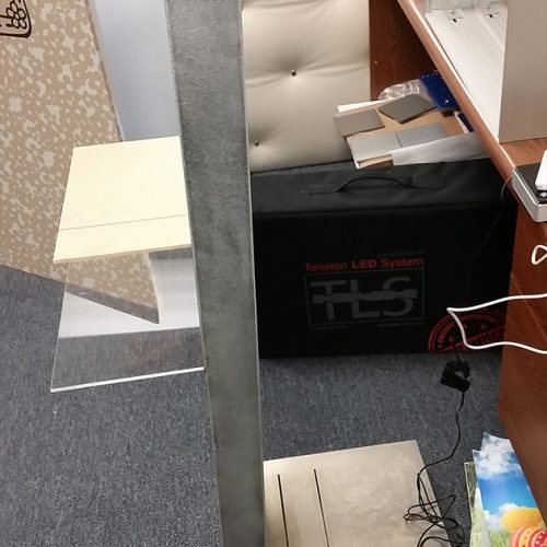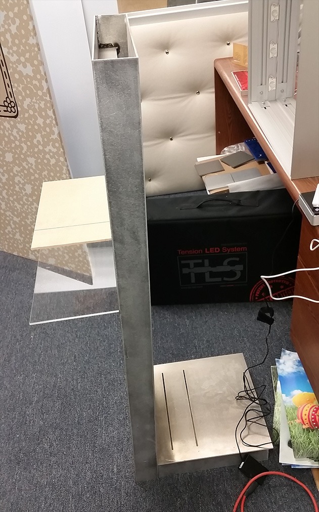 Daniel Zaug received a lot of positive feedback on the large NFCZ unit at the Vision Expo and decided to create a smaller instore unit. One unit was designed to fit onto a standard eyewear frame board. The second was designed as a compact unit that disassembled into three pieces to ship flat. All of the correct measurements were given to a vendor through his 3D renderings to produce the exact design.