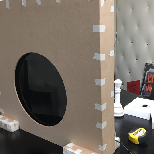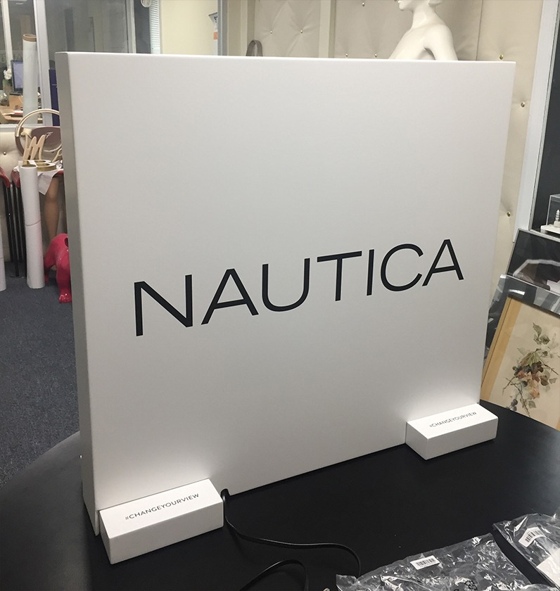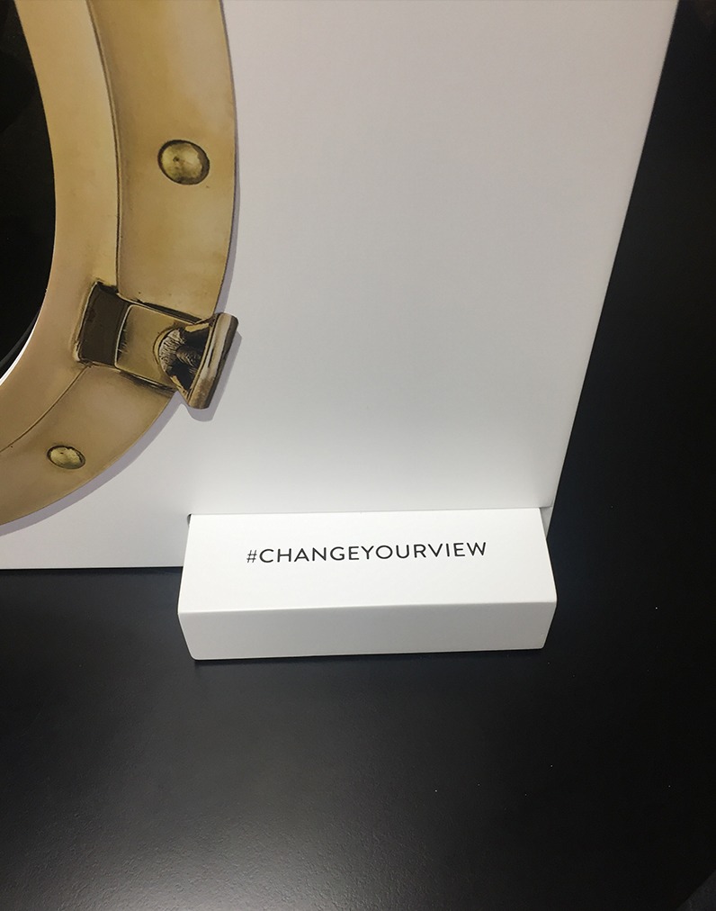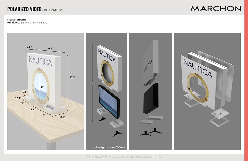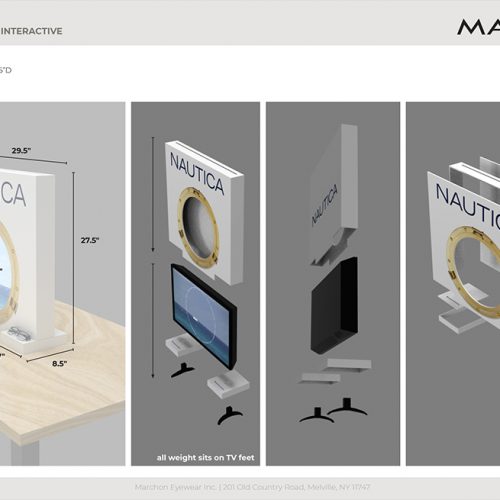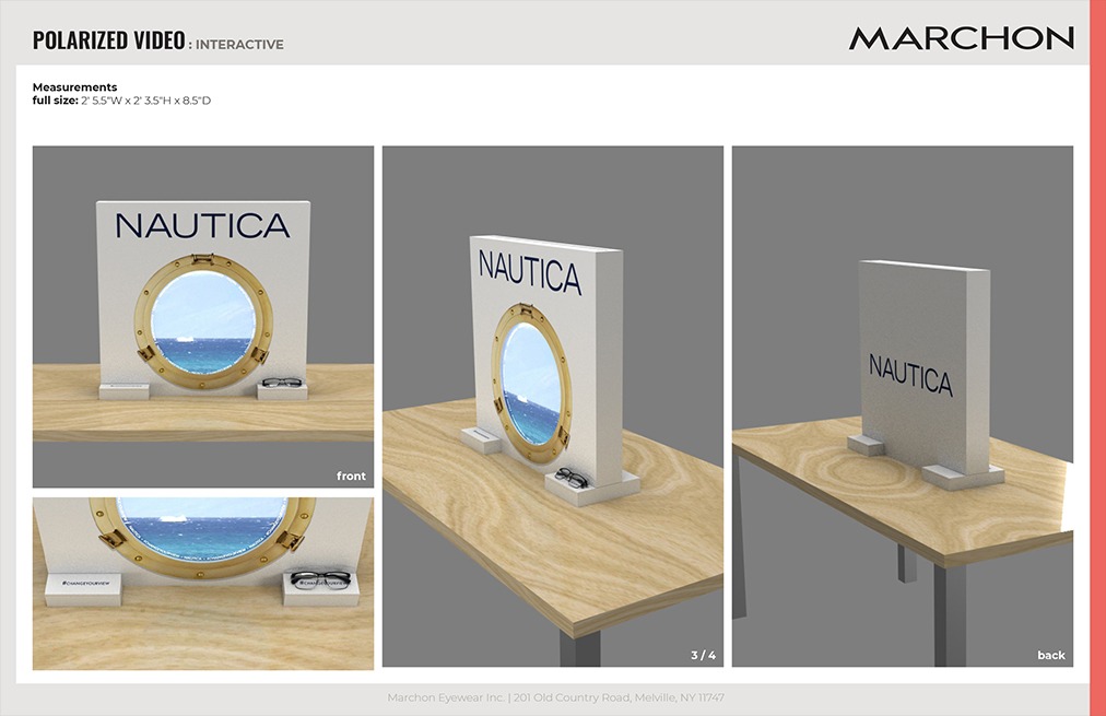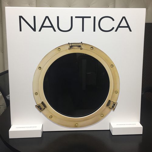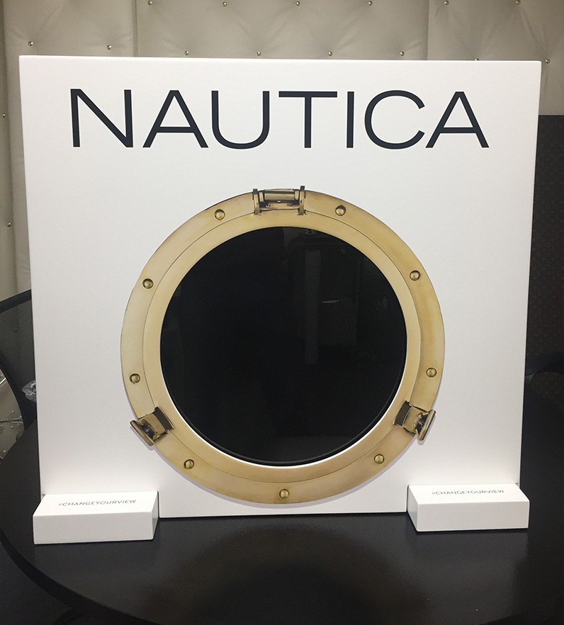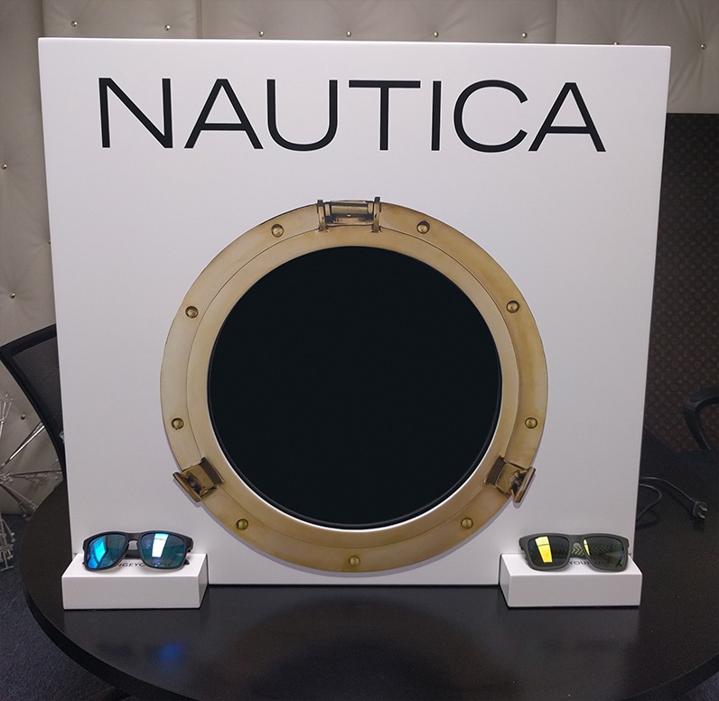 Daniel Zaug received a lot of positive feedback on the sailboats that created color from nothing. He then wanted to get the colors to move in the same way as if nothing was there to start. Using the tagline for Nautica “change your view” we decided to use a ship porthole. So that once you had Nautica glasses on your view had been changed. Designing and overseeing the construction of the display allowed the inner workings to be concealed.