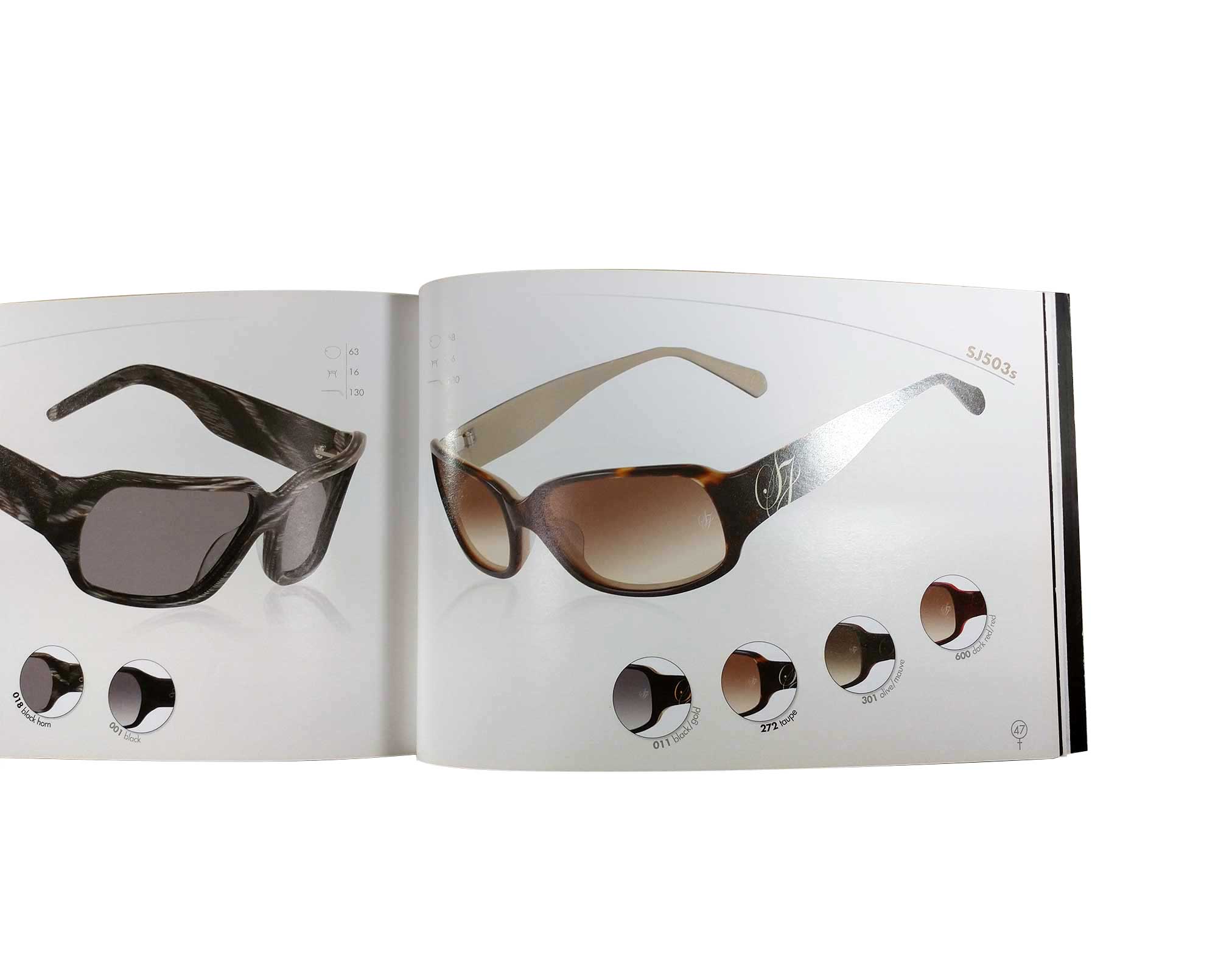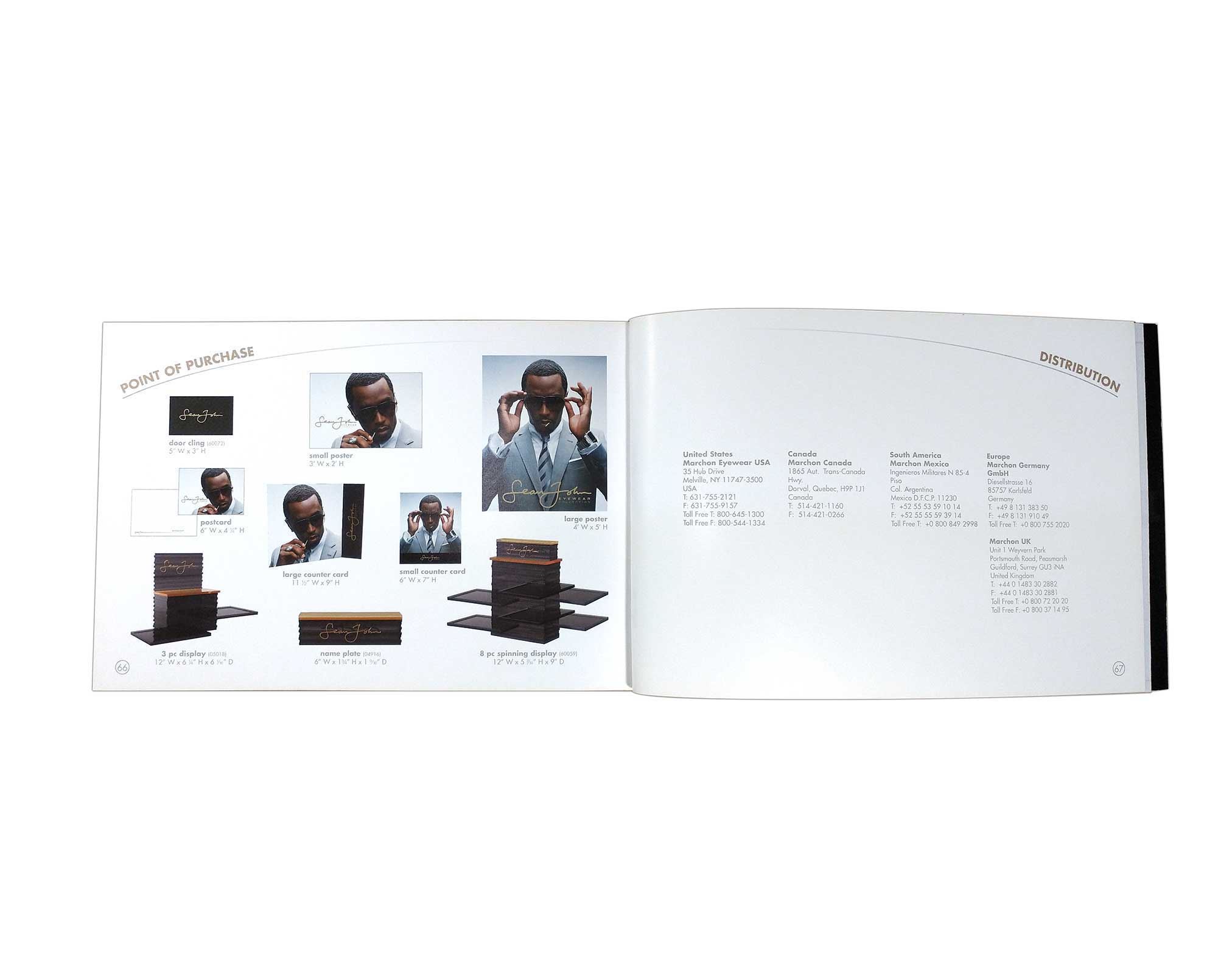 The 2007 Sean John eyewear catalog was under Daniel Zaug’s management from start to finish. It began with a clean and new design layout based on the brand DNA and the other lines of business for that year. As Sean John is a singer, the catalog dimensions came from a CD case. The height was equal to a CD, but the width expanded for the eyewear on the inside layout. Circles were used for the color insets of each frame to resemble an actual CD. All of the glasses for the features, insets, and section dividers were photographed and retouched by Daniel.